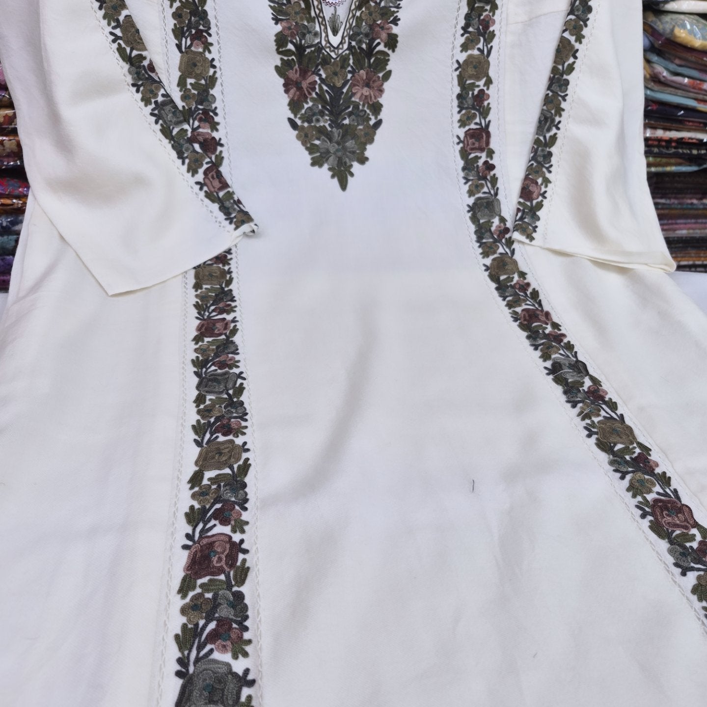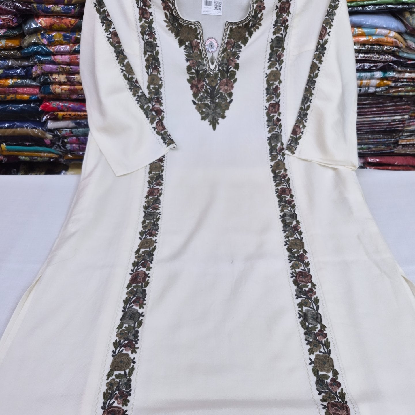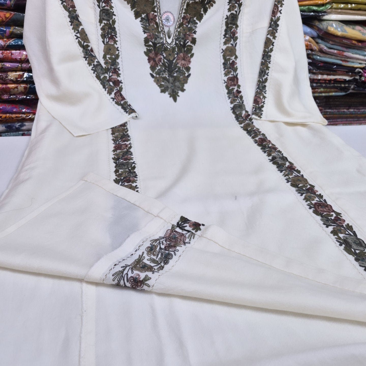 Discover the timeless elegance of authentic Kashmiri pherans, meticulously crafted with fine cutwork and hand Ari embroidery. Each piece showcases traditional artisanal techniques passed down through generations, featuring intricate patterns that reflect Kashmir's rich textile heritage. The delicate cutwork detailing combined with skilled embroidery creates a sophisticated garment perfect for special occasions or everyday elegance. Handmade with precision and care, these pherans represent the pinnacle of Kashmiri craftsmanship, offering you a wearable piece of cultural artistry.
